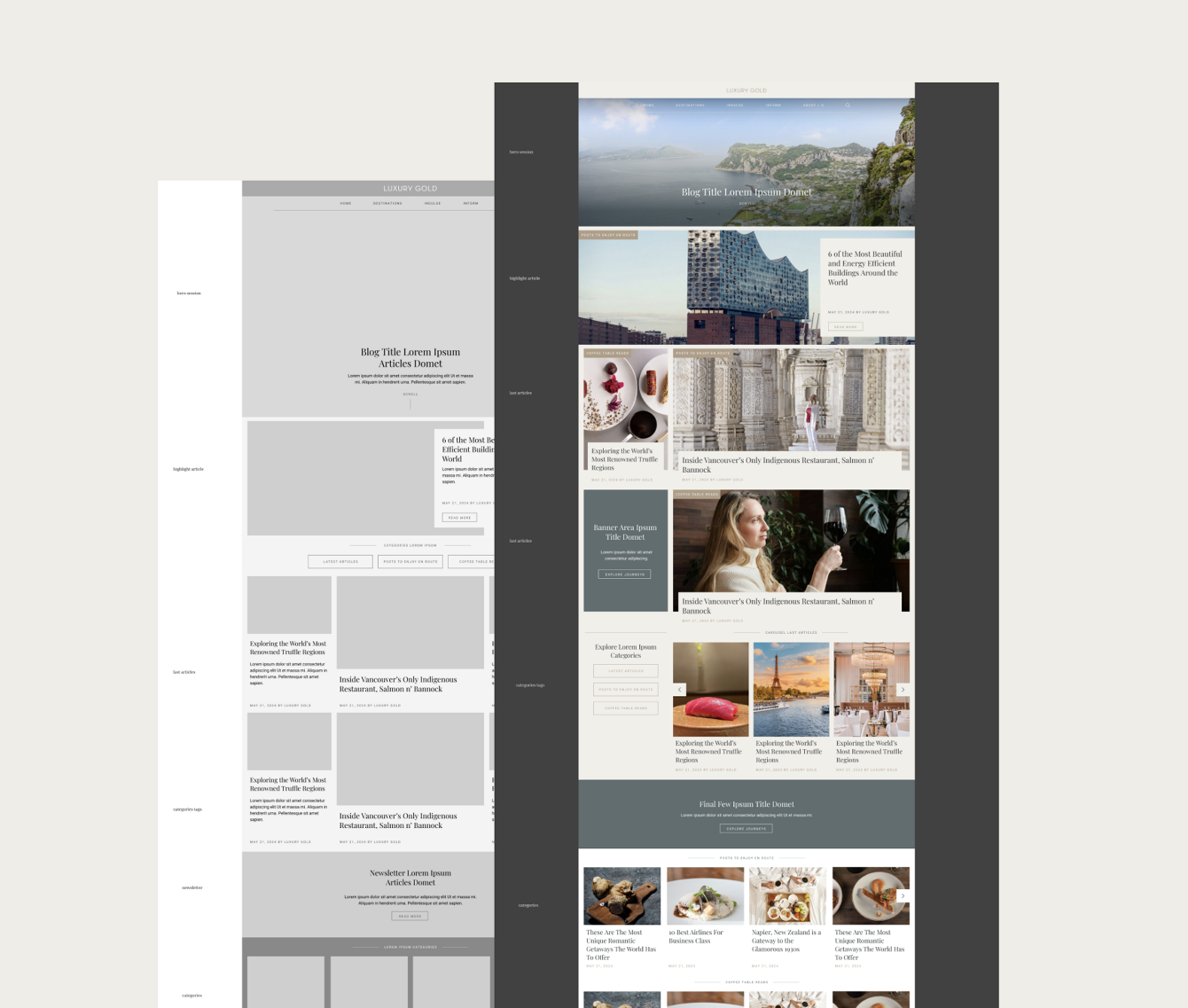 My collaboration included designing templates and assets aligned with brand guidelines and regional briefs. A key project involved redesigning the Luxury Gold blog website blog, where I defined scalable visual rules and UI components across the brand’s digital ecosystem. This included typography hierarchies, color relationships and reusable UI patterns that upheld the premium feel without sacrificing usability.